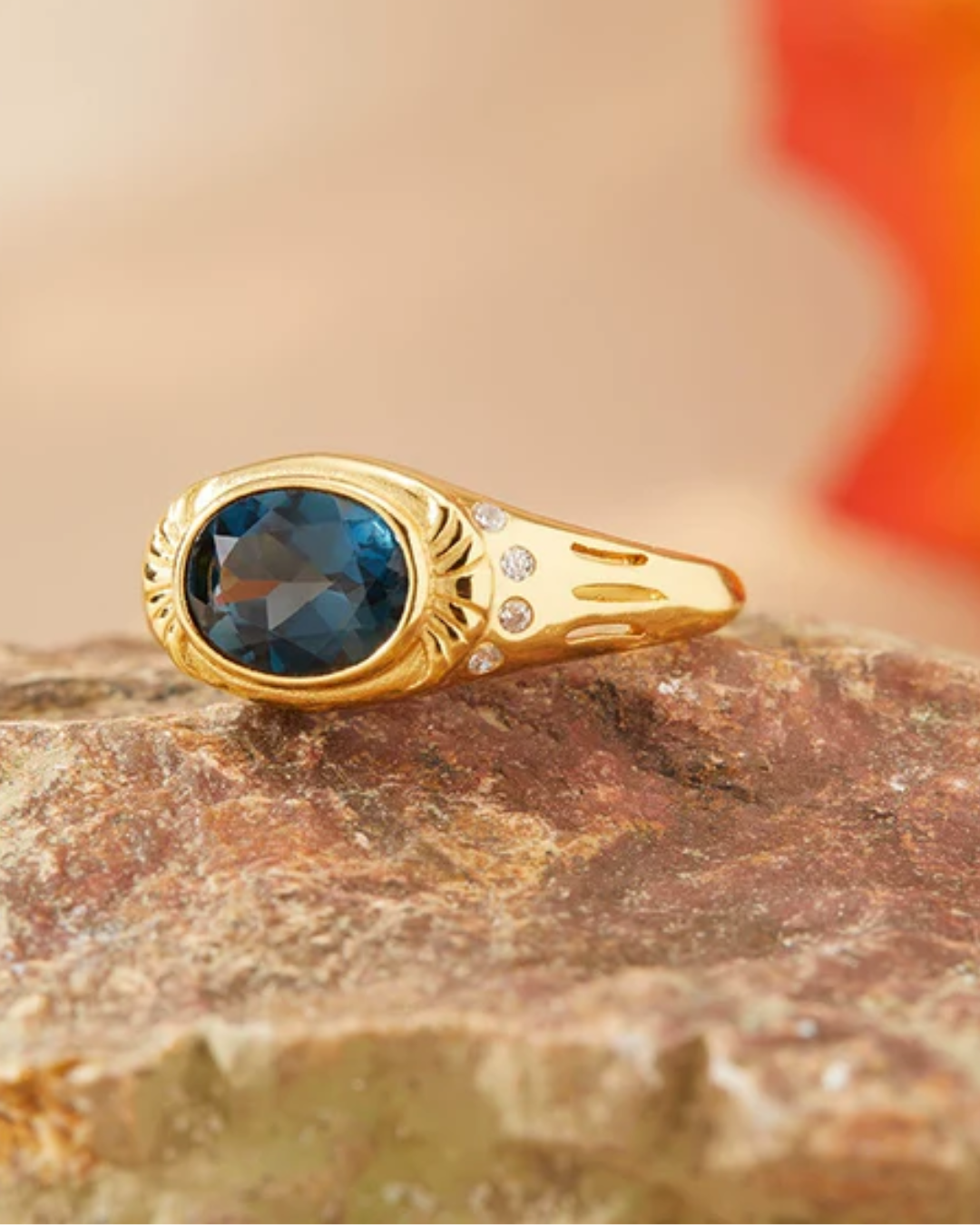 Anel Prisma de Cascais banhado a ouro 24k com pedra natural